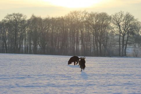 Auch graben ist mit Bauch an getauten Stellen noch gut möglich. |