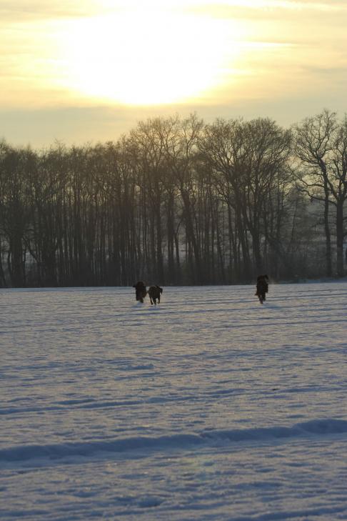 Wir haben ein wunderschönes Wochenende im Osten Deutschlands verbracht. Hier habe ich auch Aramis zum ersten Mal nach seinem Umzug nach Dresden wiedergesehen, ich bin begeistert von dem großen Buben. Es freut mich sehr, dass er und Herrchen weiterhin gefördert werden. Die Hunde haben sich zu superschnellen Wirbelwinden entwickelt. Aljoscha steht eindrucksvoll, ausdauernd und wunderschön vor, am liebsten Schmetterlinge. Es macht so viel Freude die Entwicklung der ersten von uns gezogenen "Zwerge" zu beobachten.