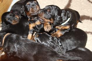 Es gibt eine neue Wurfplanung! Für den C-Wurf mit Klärchen möchte ich statt Emil z Wenytry (den ich gerne, wenn alles gut geht und die Zeit dafür reif ist, einmal für Bonny einsetzen möchte) lieber The Field Artits Aluco einen noch sehr jungen, aber überaus erfolgreichen Gordonsetter Rüden aus einer wunderbaren Leistungslinie einsetzen. Aluco besticht durch seine Vielseitigkeit in der Arbeit und sein hervorragendes Wesen. Bilder und Informationen über Aluco finden Sie unter Wurfplanung. Es gibt auch wieder neue Bilder unserer Nachzuchten:Ben (Floyd), Barnaby (Ludwig), Brenda, Balsam, Bond (Diego), Burak (Ellwood), Aljoscha, Apollo und natürlich auch Audery und Bonny.