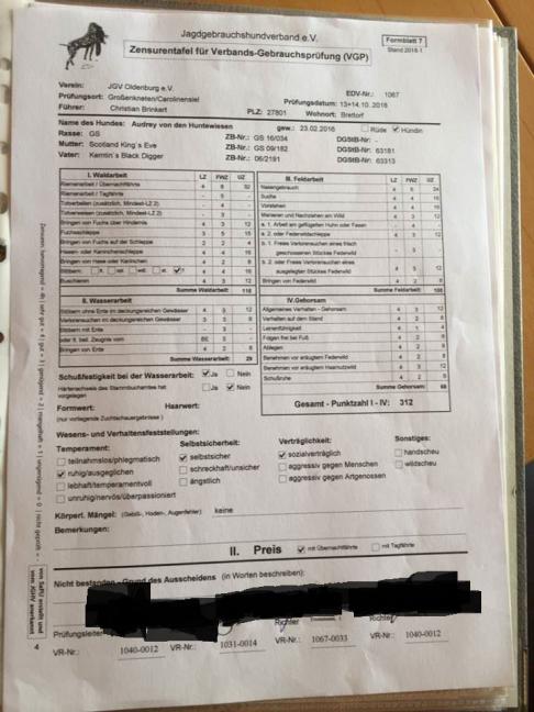Und unsere Audrey bestand an diesem Wochenende die VGP mit 312 Punkten. Wir sind wirklich happy. |