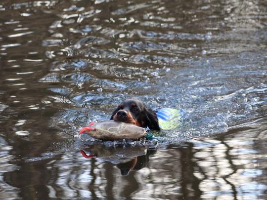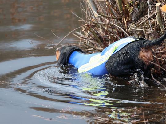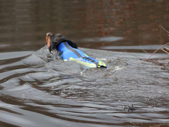 Jetzt ist Wasserarbeit im Winter für den Hund