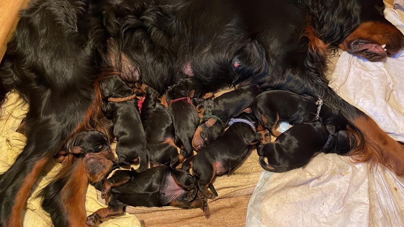 Dora hat heute 10 propere Welpen 7/3 mit Gewichten zwischen 408g und 596g gewölft.