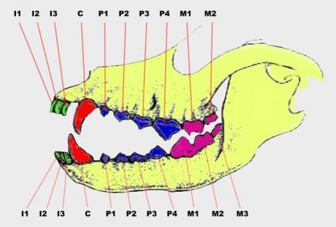 Zuchtzulassungsbewertung in Bezug auf Zahnanzahl: uneingeschränkt vollständige Zahnzahl, eingeschränkt bei bis zu 2 fehlende Prämolaren Zuchtsperre alle anderen Abweichungen