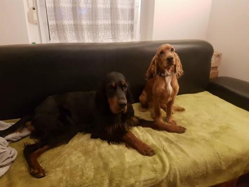 Aljoscha war Ende März im Kennel " " in der Tschechei für seinen ersten Deckakt vorgesehen (Foto von Ilja mit seiner Hündin an der Seite). Über diese Anfrage habe ich mich sehr gefreut und wir haben einige Monate auf die Läufigkeit der Hündin hingefiebert. Die Hündin ist nun läufig, leider ist es im Zuge der Corona Pandemie und der daraus resultierenden Grenzsperrungen nicht zu dieser Verbindung gekommen, schade.