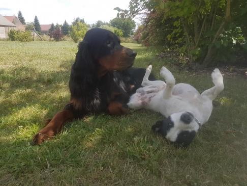 Aljoscha führt ein wunderschönes, abwechslungreiches, aufregendes Setterleben. Er entwicket sich ganz prächtig. Ich freue mich jedes Mal wenn ich ihn sehe.