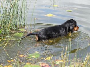 Am 26.06.2016 hat ein kleines A-Wurf Treffen im Spree Wald statt gefunden. Aramis hat Schwester Jule (Alegra), Bruder Aljoscha und die N-Wurf Kinder von Eva (Ninjan,bei ihm fand das Treffen statt, Nera und Nala) getroffen. Sowohl die Hunde als auch die Menschen haben einen wunderschönen sonnigen Tag an Land und im Wasser erlebt. Schade das ich nicht dabei sein konnte. Aber das holen wir nach! Aramis hat sich prächtig entwickelt und ist weiterhin der kräftigste aus dem ganzen Wurf (19 kg). Er geht gerne in Wasser und spielt und beschäftigt sich mal mit den anderen Zwergen oder auch allein. Ein Schmunzeln ins Gesicht zeichnen mir die Bilder mit der eingeklemmten Leftze. Diese Eigenart haben sowohl Mama Eve als auch Oma Vanda.