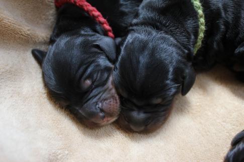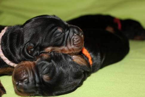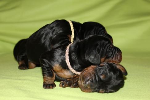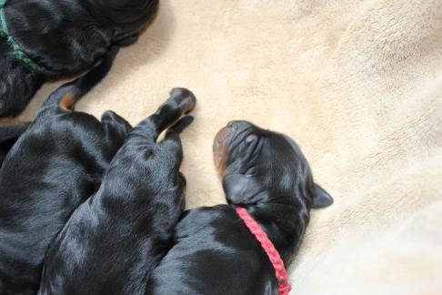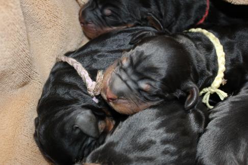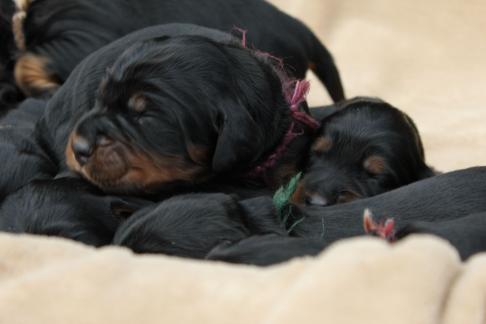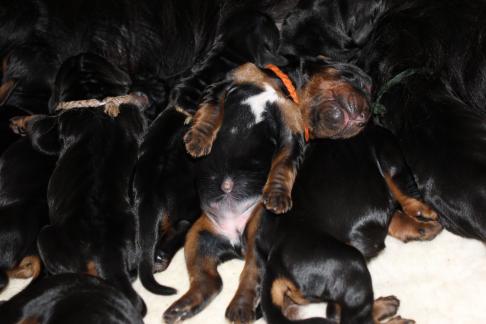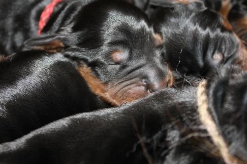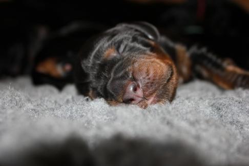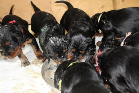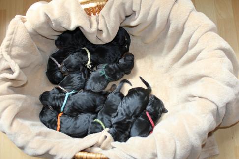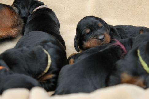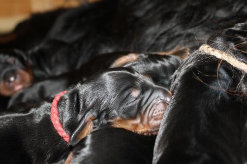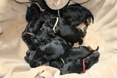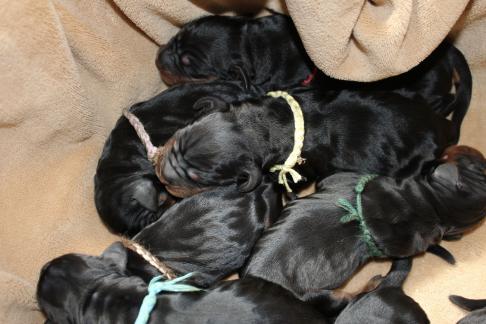 Die Welpen wachsen und gedeihen. Die ersten haben bereits die 1 kg Marke geknackt. Hier einige Bilder der munteren Schar zwischnen den 2. und 9. Tag.