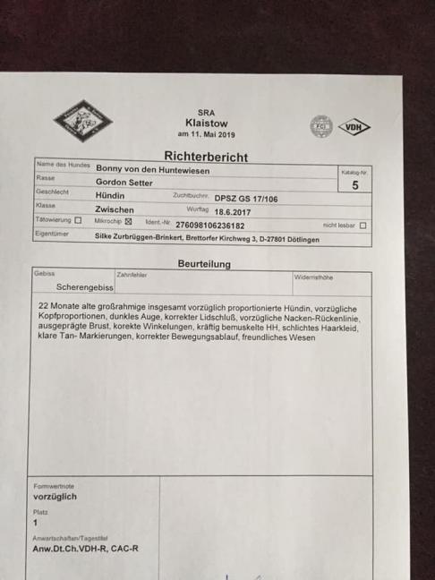 Bonny ist nun Zuchthündin im Verein für Pointer und Setter e. V..