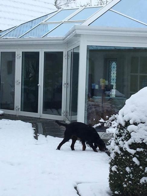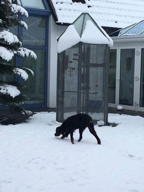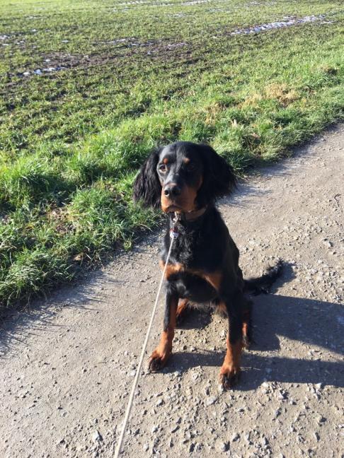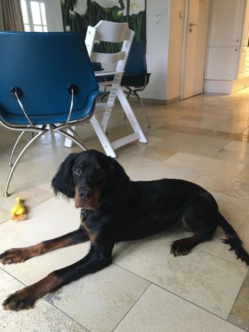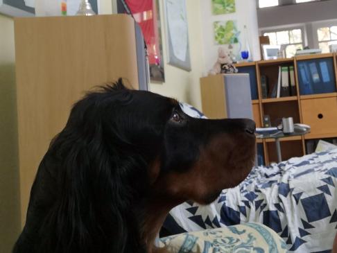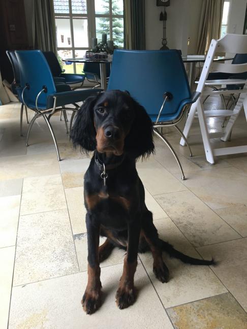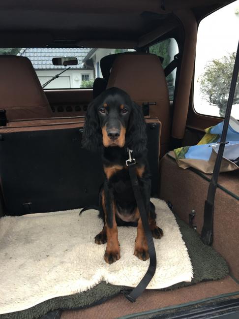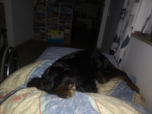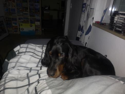 Brenda ist gut im neuen zu Hause angekommen und hat das für sie bereit gestellte Hundebett in Besitz genommen.