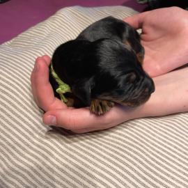 Nun kommt Falk an die Reihe, der kleine Rüde wird in einem großen Haushalt mit Hunden leben. Viel Freude miteinander.