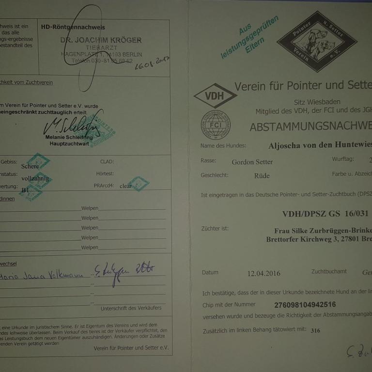 Formwert: sg, uneingeschränkt zuchttauglich im Verein für Pointer und Setter e.V.
